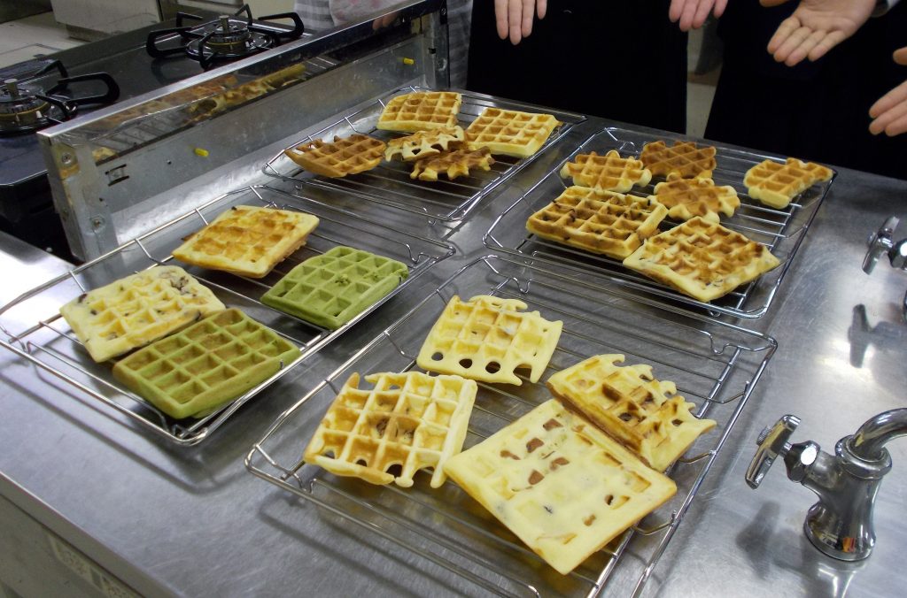 家庭部 2025年10月20日 「かんたんに、おいしく」をモットーに、短時間でお菓子作りをしています。年に1回、ミシンを使う縫製活動があります。体育大会で用いるクラス旗24枚の縫製を1,2年生全員でおこなっています。 材料4つで「スノーボールクッキー」 中華せいろで「シンプル蒸しパン」 電気フライヤーで「サーターアンダギー」 パテから手作りランチメニュー「ハンバーガー」 市販のお菓子も手作りできるよ「ショートブレッド」 ワッフルメーカーでいろんな「ワッフル」